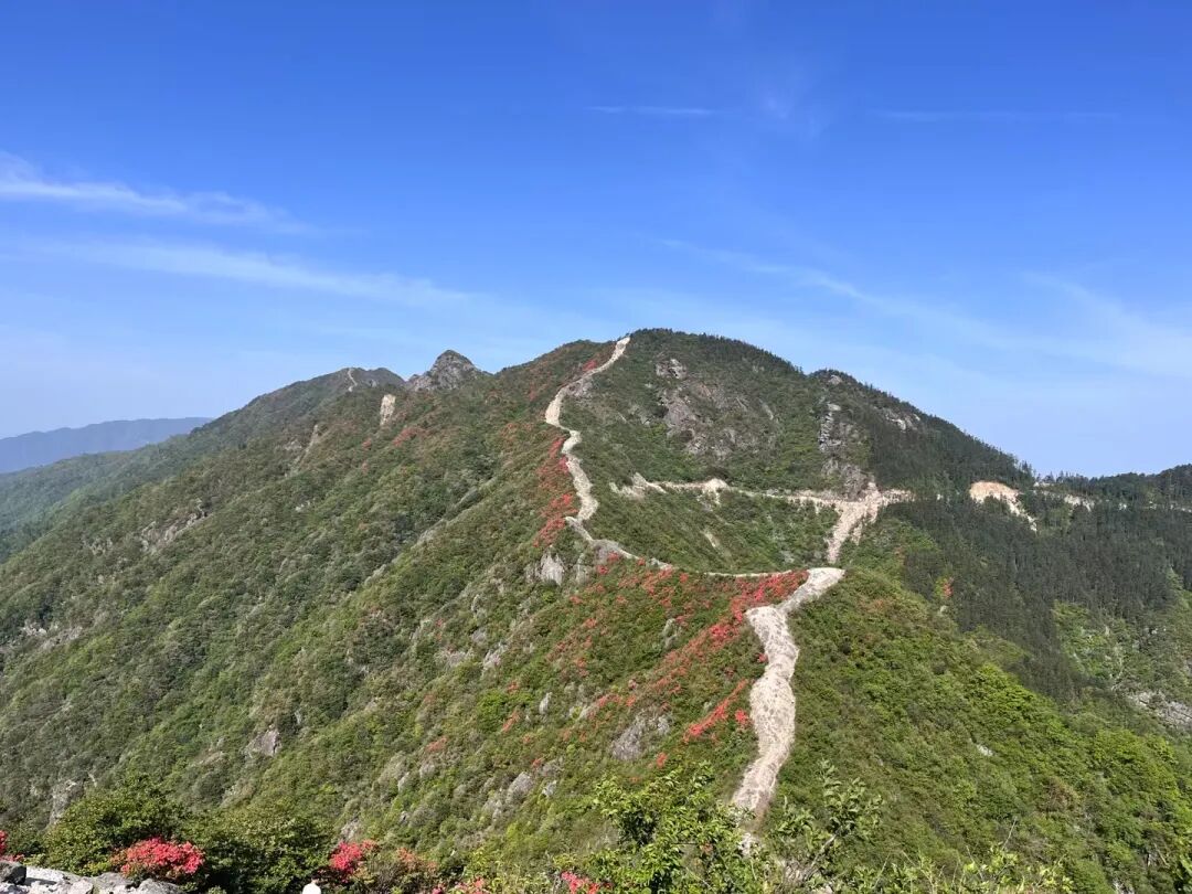 “五一”假期,黄龙乡万亩高山野生杜鹃花迎来盛放期。粉红、紫红的杜鹃花在群峰环抱中铺展成“天然花毯”,吸引众多游客前来登山赏景。