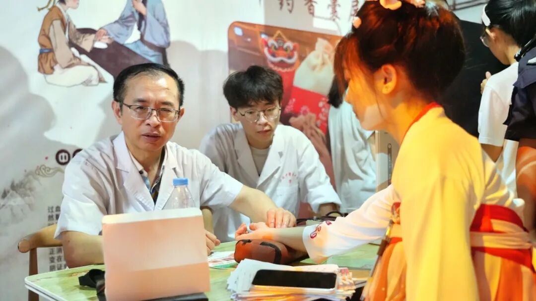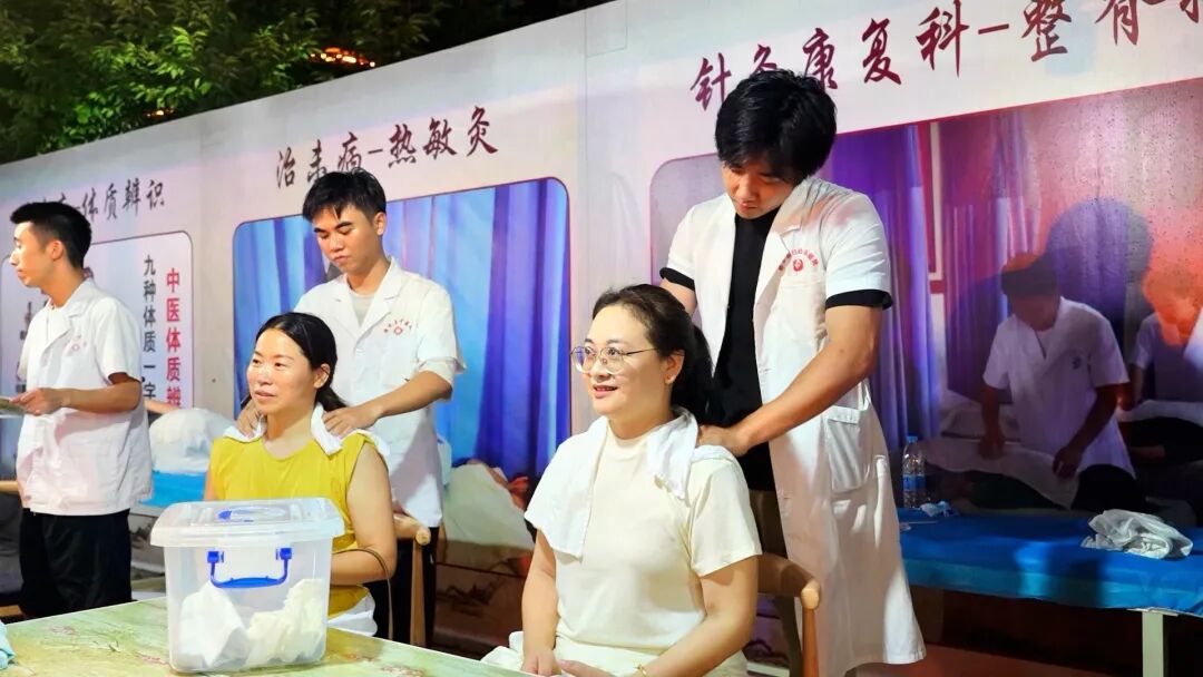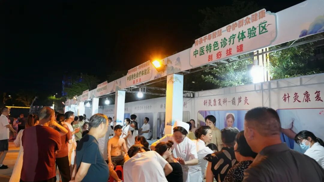 夜市现场,设置了中医健康义诊咨询区、中医特色诊疗体验区、中药香囊展示区、中药茶饮区、中医体质辨识区、体重管理区共30多个摊位,为市民提供免费的把脉问诊、健康咨询、针灸推拿体验、常见病防治指导以及特色中药茶饮品尝等服务。