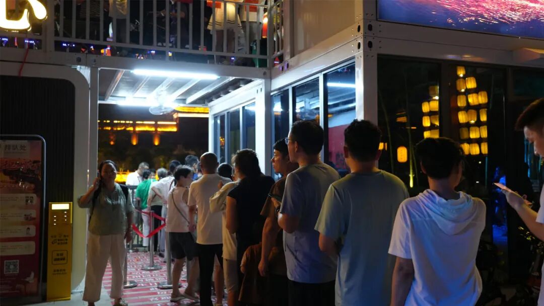 游客胡任仁说:“今晚我们稍晚一些到,没能买到票,就和家人同事在岸上欣赏夜景,也非常温馨。”