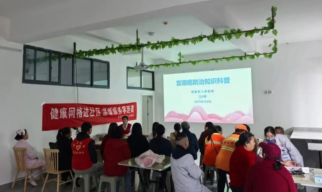 活动当天,医护人员来到匡庐社区活动中心,开展健康知识讲座。内容涵盖宫颈癌防治知识科普讲座、皮肤科义诊活动、秋冬季节传染病预防、科学饮食与健康生活方式等,讲座内容丰富实用,居民们认真聆听,积极互动。讲座结束后,医院医护团队设立义诊台,为居民提供免费血压、血糖测量和健康咨询服务,针对居民的健康状况给出专业性的医疗指导。