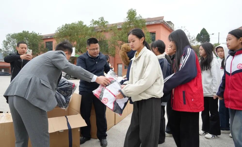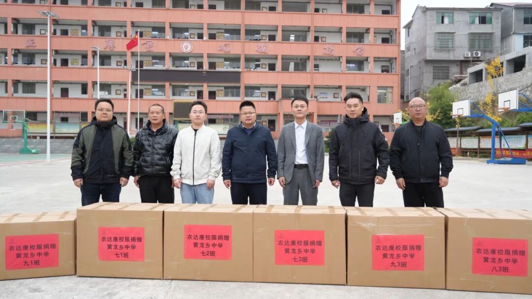 11月17日,江西衣达康服装制造有限公司代表走进黄龙乡中学,向学校捐赠366套爱心校服。