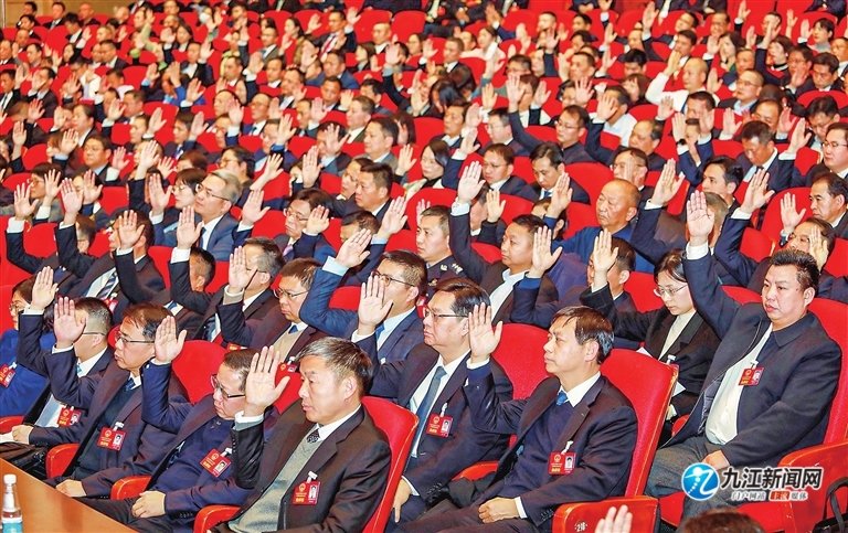 1月13日下午,九江市第十六届人民代表大会第六次会议圆满完成各项议程,在市文化艺术中心胜利闭幕。