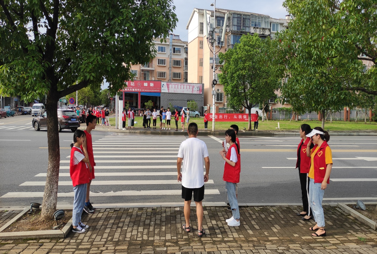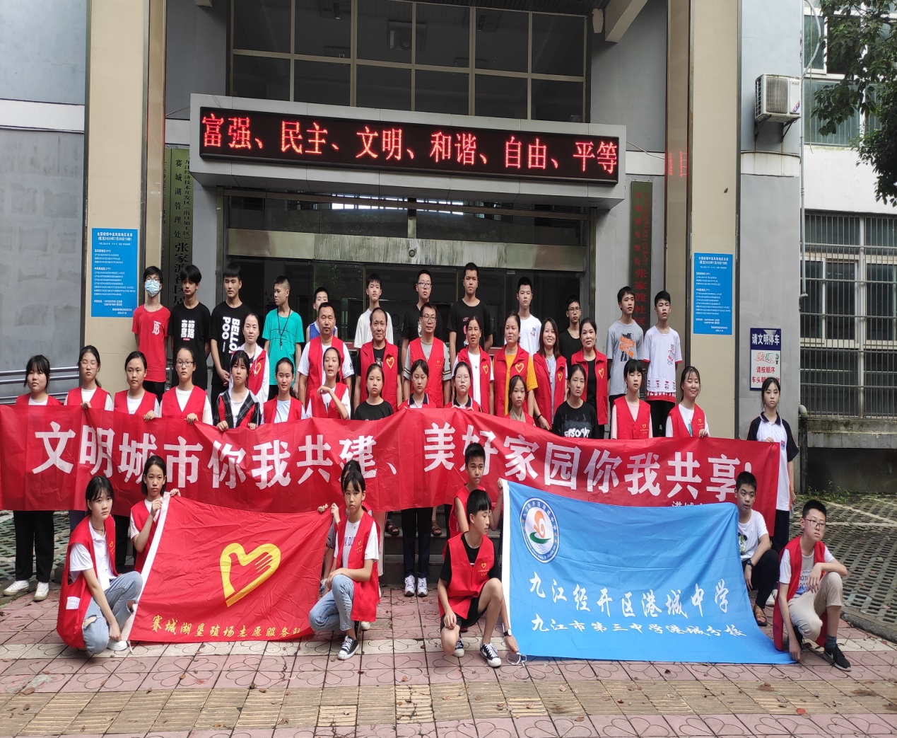 为了进一步助推九江市精神文明城市创建工作,营造社会互动、全民参与的创建氛围。8月12日下午,张家渡社区联合港城学校学生志愿者在辖区内开展以“小手拉大手共创文明城”为主题的系列活动。烈日当空,骄阳似火,社区志愿者与港城学校学生们按时到了集合点,穿好马夹,一切都在有条不紊进行中。