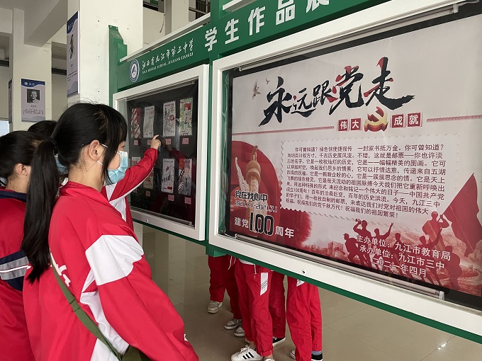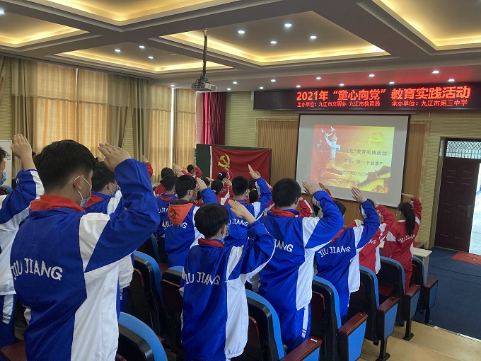 4月1日~4月21日,九江市第三中学以“童心向党”为主题,开展主题突出、特色鲜明、形式多样的教育实践活动,引导青少年从小听党话、感党恩、跟党走、厚植爱党爱国爱社会主义情怀,努力成长为中国特色社会主义事业建设者和接班人。