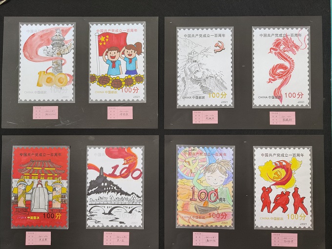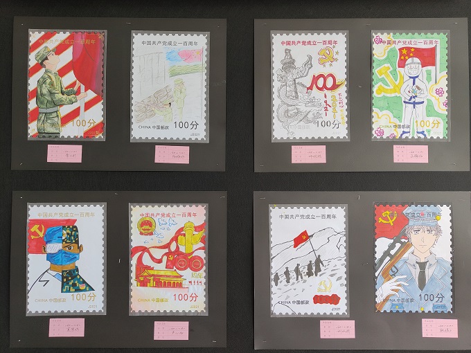 学生自制邮票,一张张活灵活现的图案,表达了广大的青少年强烈的爱党爱国之情,一幅幅生动的作品展示童心向党,永远跟党走。