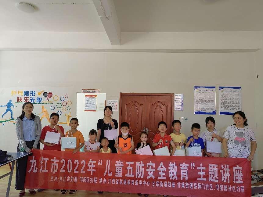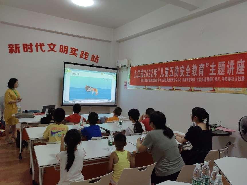 为普及五防教育,宣传安全知识,预防意外伤害的发生,7月11日上午,由市、区、街妇联牵头,岳师门、浔阳楼社区妇联联合江西省家庭教育指导中心,在辖区内开展了“儿童五防安全教育”主题知识讲座。