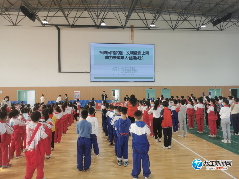 10月17日,由市文广新旅局主办的“预防网络沉迷 文明健康上网助力未成年人健康成长”活动在八里湖新区赛城湖学校举行。
