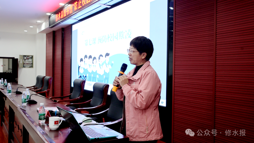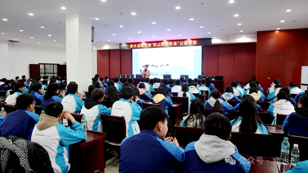 12月4日,县图书馆举办“预防校园欺凌,共建和谐校园”专题讲座,邀请县巾帼志愿者协会会长邹德霞为修水县中等专业学校的学生上了一堂生动的校园防欺凌知识课。