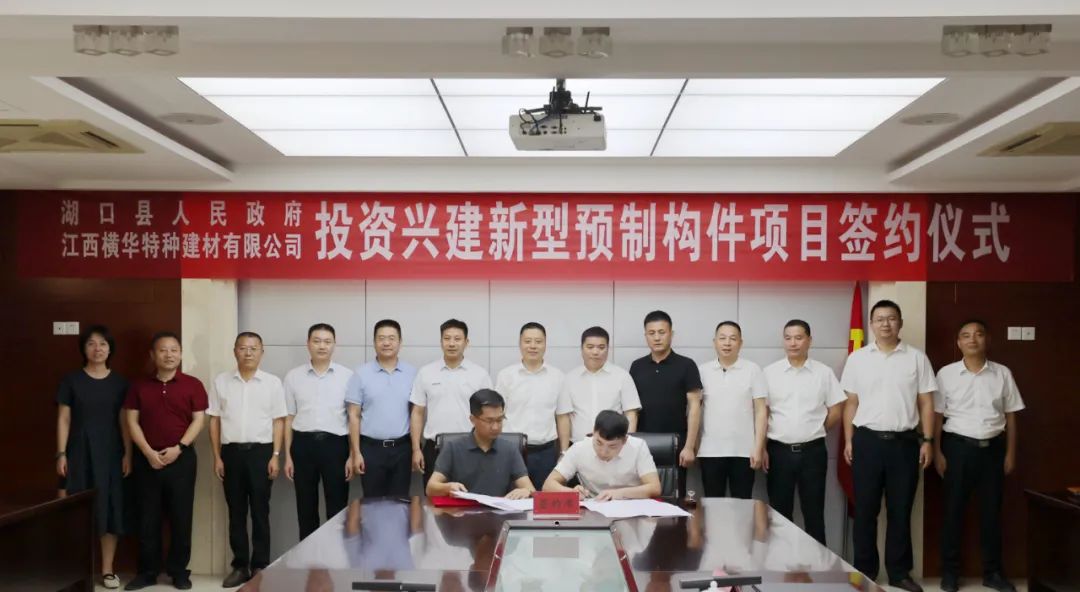 9月14日,湖口县人民政府与江西横华特种建材有限公司举行投资兴建新型预制构件项目签约仪式。江西横华特种建材有限公司董事长万国亮,总经理李鹏,县委书记曾宝柱,县委副书记、县长陈洋,县领导卢伟俊、李水木、陈兵斌及相关单位负责同志出席签约仪式。