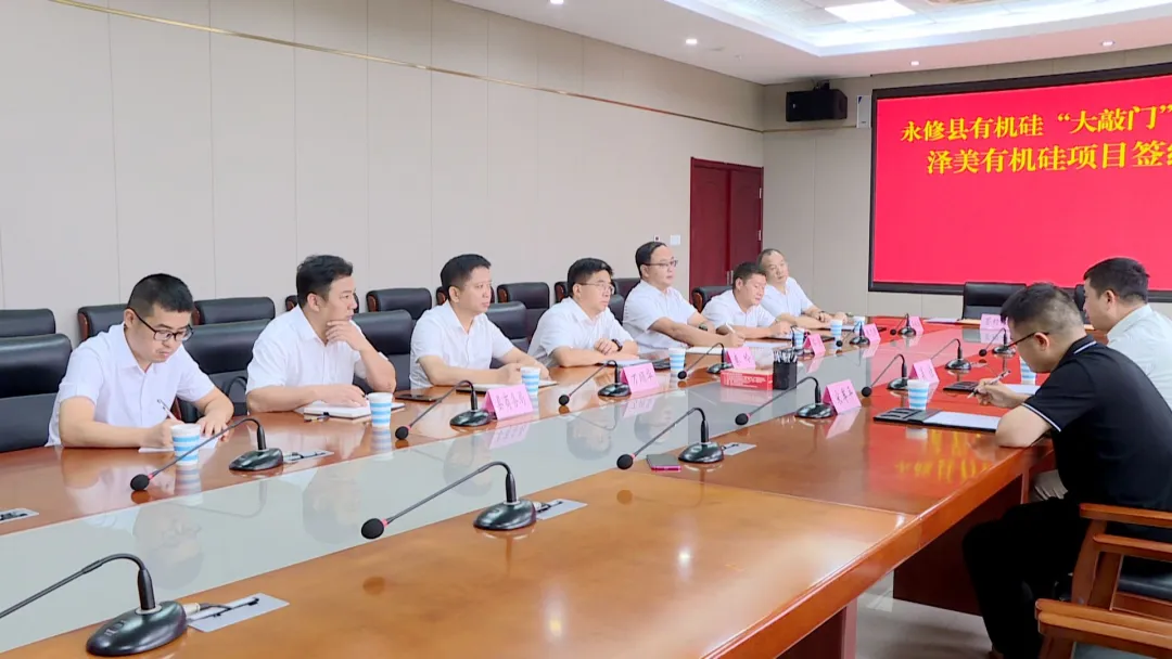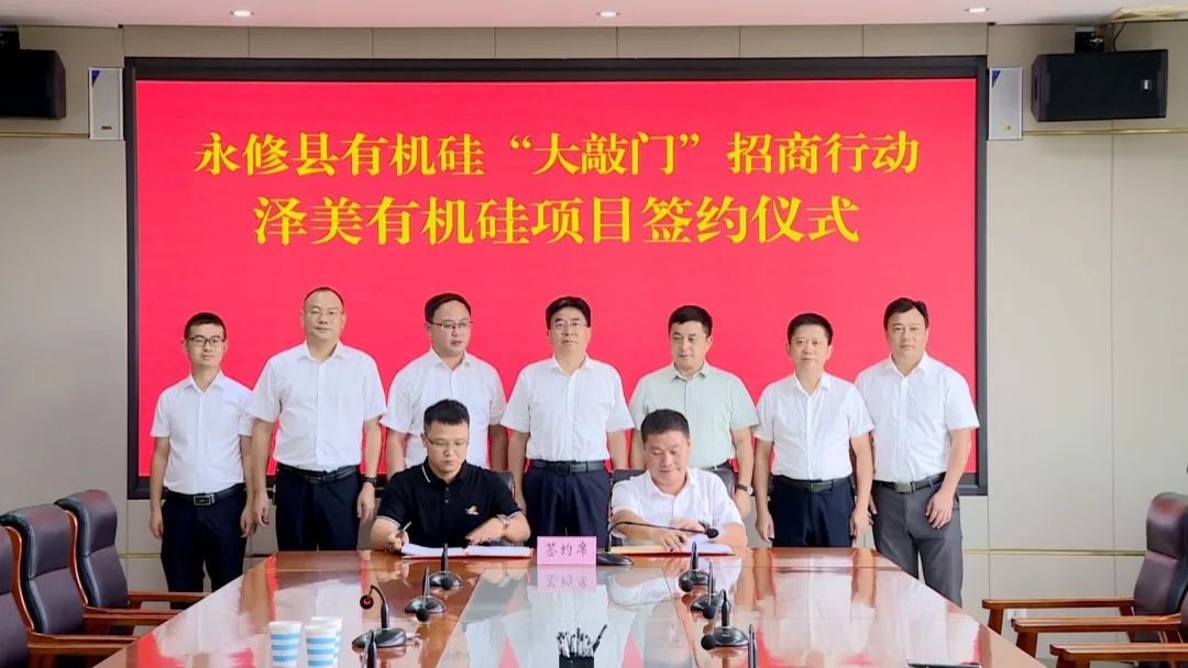 9月21日,永修县“大敲门”招商行动再传捷报,由吴城镇引进的泽美有机硅项目正式签约落户。