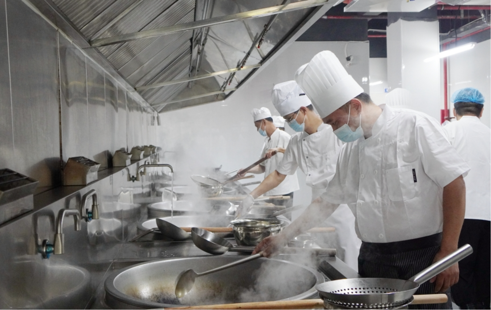 参加此次大赛的选手都是来自各市直学校的主厨,比赛现场,大家纷纷拿出自己的看家本事,只见灶台前,他们左手按住食材,右手握刀斜切,锋利的刀刃如行云流水般跳跃,将食材剥离出无数的薄片。灶台间,火苗舔舐着锅底,舞动的锅铲翻炒着菜肴,香气四溢,让人垂涎欲滴。